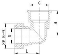 صفحه اصلی / تولید - محصول / سری اتصالات / اتصالات لوله برنجی زانویی 90 درجه AMT-1503